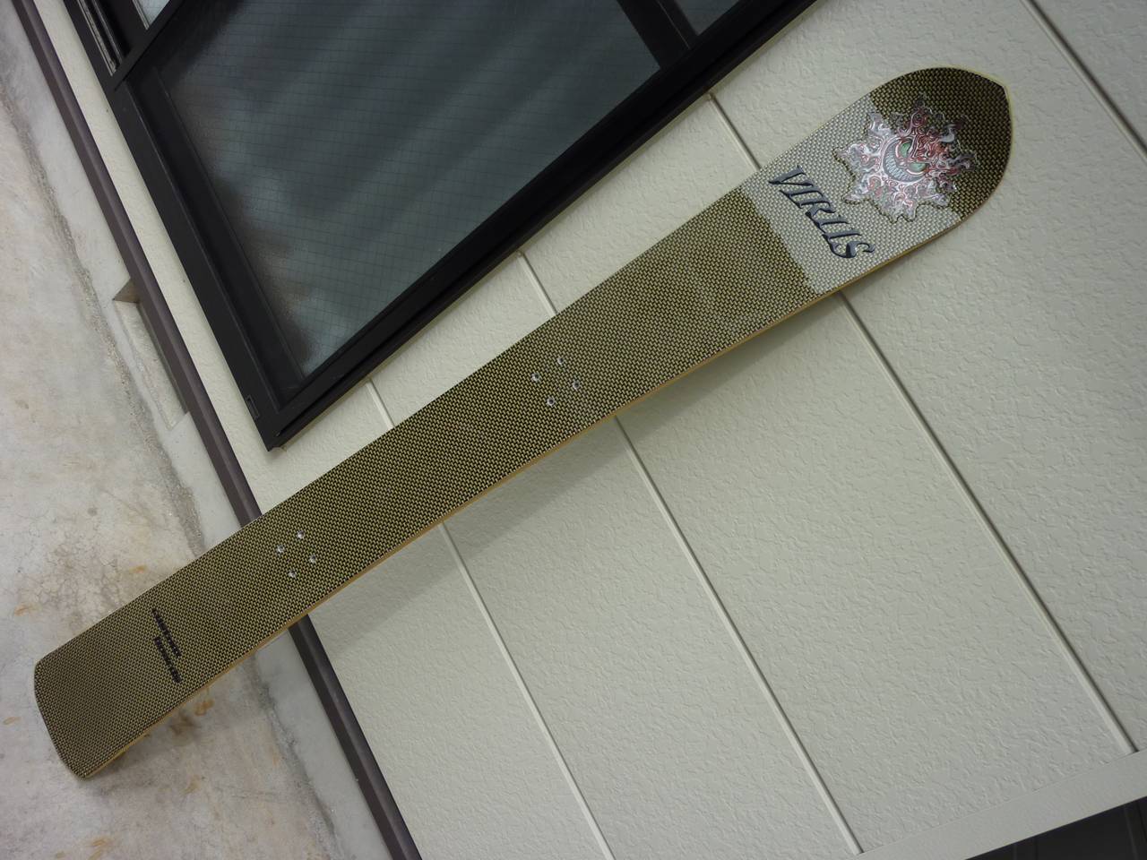 もうすでに4シーズン目になるカーボンビンディングプレート、はじめの頃はポリエステル系のカーボン用樹脂で作っていましたが、現在は耐久性と振動吸収性の向上の為に,、より高価なエポキシ樹脂で作っています(TOPシート全体貼りははじめからエポキシです)。