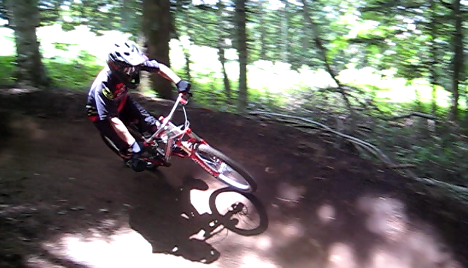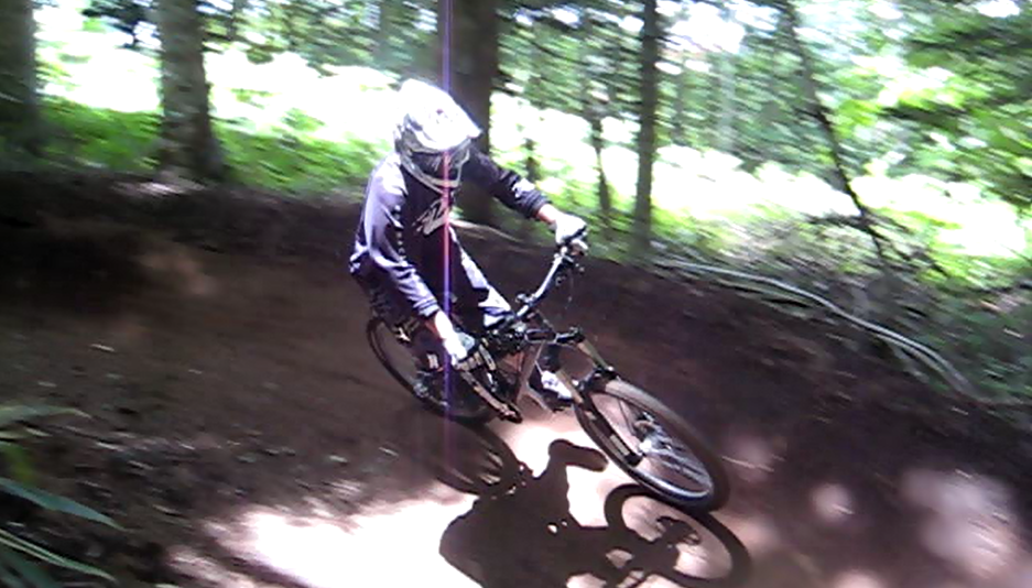 ・・・で、もひとつネタ・・・。ふじてんコースプロデュ―サーのだいきくん(くんなんて呼んでるけど日本を代表するプロMTBフリーライダー)が居たので、ここぞとばかりにコースリクエストしてみました^^;。「ちゃりでLaydownしたい・・・」と背中のヨーグさん見せて^^;、Youtubeでみた事のあるハンドル擦り擦りのコーナーみたいなのが・・・と・・・。