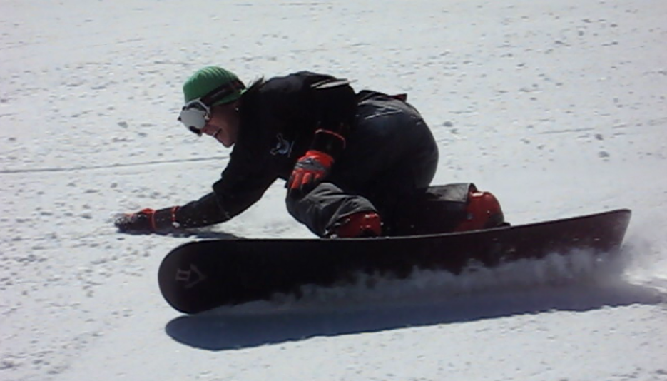 ・・・今日みたいな一見よさそーに見えて、所々に罠(氷)があるような読めないコンディションの時は、リラックスして簡単カービングです!。唐突な罠に対応できるようにローダウンで簡単カービングです!。