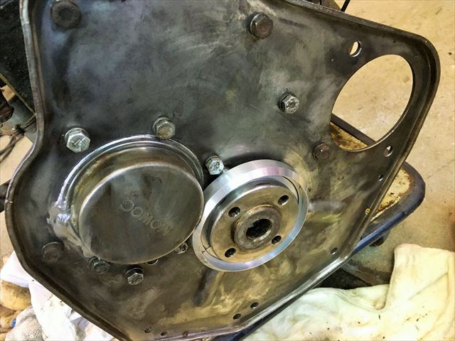 ・・・赤い車のエンジン。エンジン載せる前にオイル漏れ修理。オイルパン外したら・・・すんごいオイル真っ黒&スラッジ&ドロドロ。で、このエンジン、クランクシャフトのオイルシールが・・・前側は付いてますが後ろ側ははじめから無い設定です。クランクシャフト自体に溝は掘ってあって、エンジンの回転と逆方向に掘ってあるのでオイルが内側に戻される仕組み。って言ってもオイル漏れます。漏れるの当たり前です。いや、漏れるの普通で漏れてもいい設計と言っていいです。だってオイルシール無いから。・・・で、社外パーツでリヤシールKit売ってます。・・・のでこれ付けます。