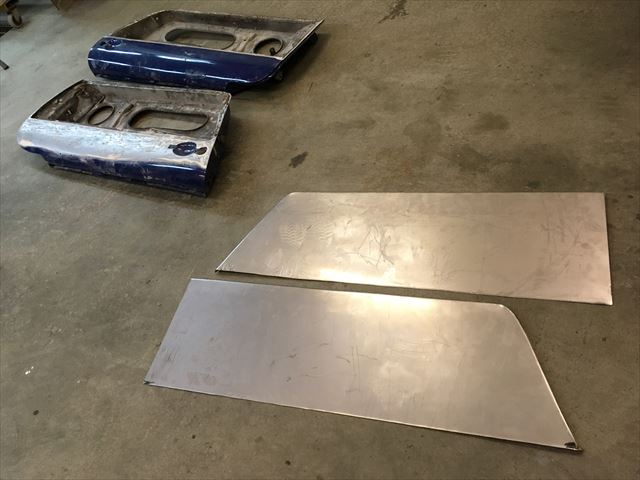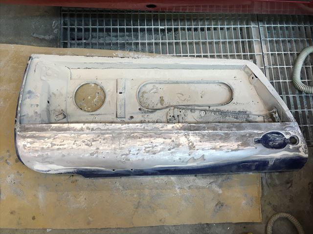 ・・・左右のドア、凸凹波々だったのでパテ結構入ってるな~と思い、でもなんか様子が変・・・。ドア下サイドシルとの隙間が超曲がってて超テキトー。ドア内側よーく見て見たら・・・2/3の鉄板貼り替えてあった( ̄〇 ̄;)。とりあえずの目的は色替えなので、今回は錆びて腐りは無いのでこのまま凸凹だけ直すか?でもドア下の隙間ラインが気に入らない・・・。ど~しよ~~~???。あ、この前FRPのドアに交換したオレンジ号のドアが有る!社長さんに聞いてみたら使っていいよ~て!。・・・で、仮合わせしたら・・・ドアの大きさ微妙に違う、930とこのタルガ・・・( ̄〇 ̄;)。