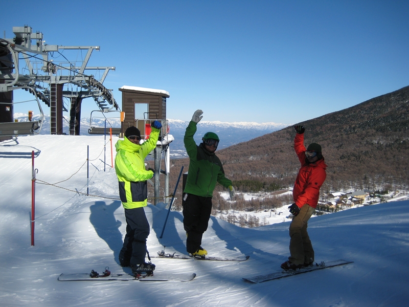 ・・・雨予報だったのに朝から青空!気温はそんなに低くなく、雪柔らかめでGood!。kajiさん今季初滑り!。m-hiroさんokamuraさんは昨日のasamaxに引き続き・・・昨日のasamaより雪いいじゃん!って・・・。misakaはホントはいつも雪良いんですよ!ガリゴリ凸凹はたまーに^^;。