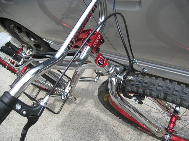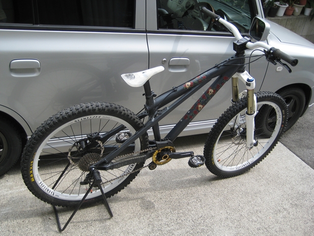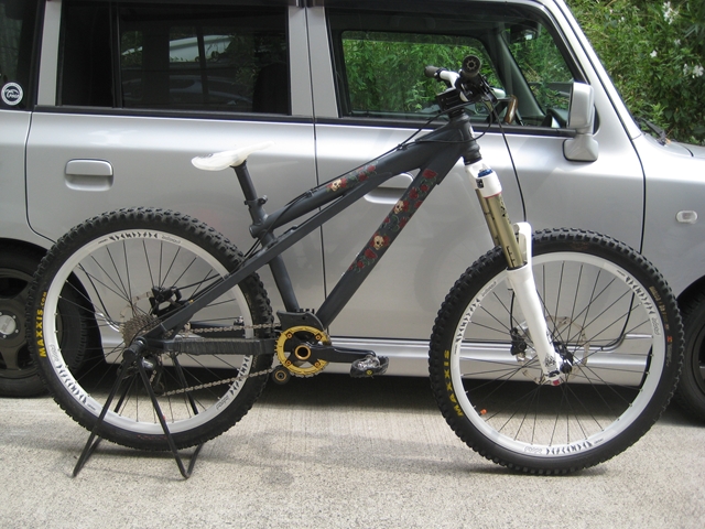 ・・・今回のHTのクロモリフレーム・・・心細いくらい細いパイプとほぼ入っていない補強・・・これでもDJフレーム。でも乗ってみたらフレーム柔らかくてしなって、まるでスノーボードの板がしなった時に出る反発がフレームにも起こります。・・・どおいう事かと言うと、しなったフレームの反発でリヤタイヤが「ポーン!」って飛んでくイメージ。HTのダイレクト感があるままで。・・・してやったり!。