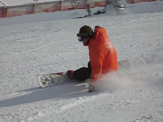 ・・・で、短ーいの持ってって遊んでみました^^y。・・・(実は昨夜のナイターでこっそり乗ってみたら、硬ーいバーンでの超高グリップと、ぴょんぴょん軽快な自由自在感にびっくりでした( ̄〇 ̄;)動画の板です。