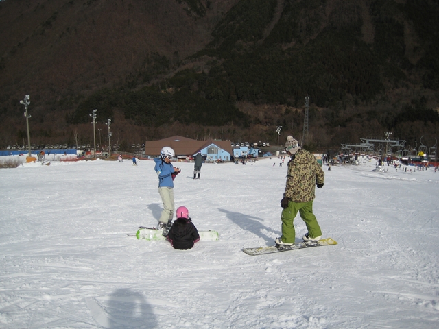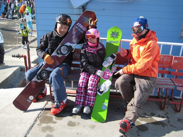 HatushikaさんとBOBさんが見てくださって、さっそくリフトに乗って上からひとりサイドスリップ出来るまでに!さくらはスキーでも滑れると思っていなかったくらいなのに、なんとアルペンボードやっちゃってる姿なんて夢の夢でした!あ~感無量(涙)。・・・ちひろがアルペンボードをはじめた時にもBOBさんに教わったのです!。HatsushikaさんとBOBさんに感謝しております!ありがとうございましたm(_ _)m。一番の恩返しはどんどん上手くなってゆく姿を見せる事だと思うので、二人ともどんどん上手くなってもらいたいです^^y。