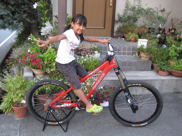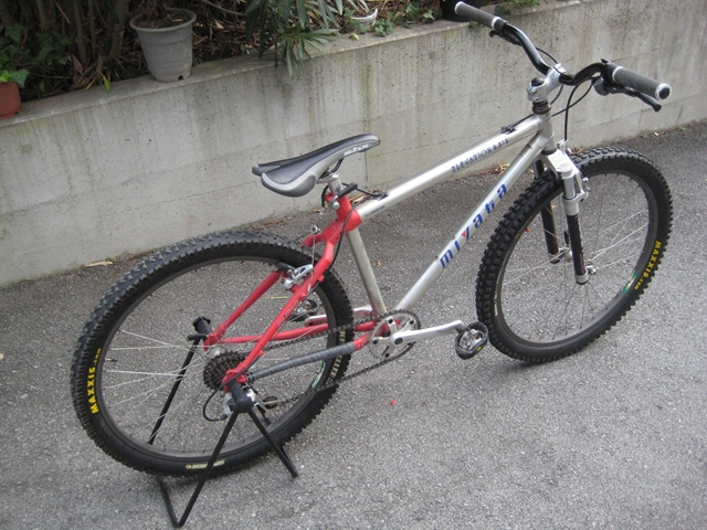 ・・・今日のミヤタ号・・・ちゃりんこ博士shimamuraさんに・・・「このフレーム溶接じゃなくてはめ込みと接着剤で作っているから抜けちゃうかも~・・・フロントサスのここが折れちゃうかも~・・・」・・・やはりこのちゃりでDHはヤバいみたい(汗)。