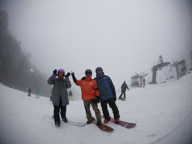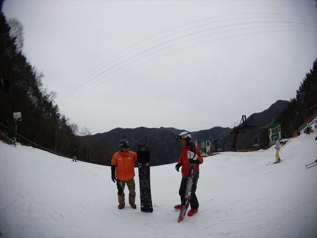 ・・・高峰山を境に晴れと曇り。何とか午前中はもってくれました!。今日のasamaxはその名の通りハードパックで最高!整備も綺麗フラット!お客さんもすくなーい!。パーフェクト!。今日はm-hiroさんとパウダーガンカービングDayだったので、これまた硬めのバーンでさいこー!。なんてったって、最近のフリスタカービングボードよりも柔らかいフレックス&トーション。カービングに関しての限界なんて低いです。でもそれが面白い!。萌え萌えです!。