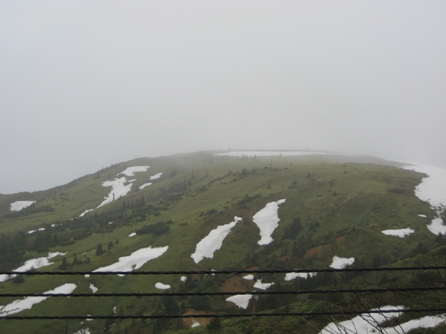 渋、横手は雨でしたが、リフトは動いていてスキーの人達が数人滑っています。やはり最後なので雨でも滑っちゃうのですね。その気持ちはわかります・・・。・・・名残惜しい雪を見ながら最後の雪山記念撮影・・・。