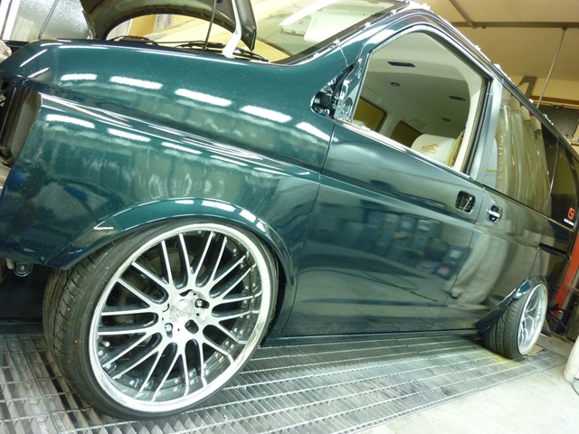 シルバーボディーだったのがAll Pでグリーンに・・・レインボーラメっちゃいましたよ!。なかなかGood!。来週の土曜日納車ですので完成したらまたのっけます!。・・・と言う、sのちゃんと仕事してますの報告(汗)。