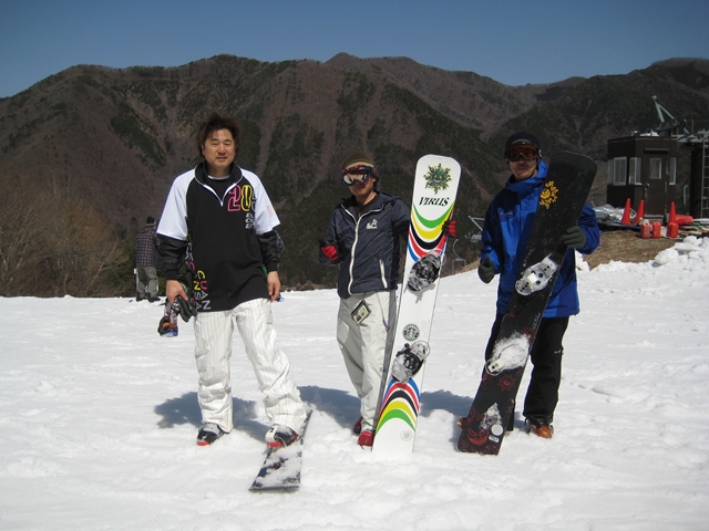 ・・・今季今頃初ボードなmitsuiママさん!と一緒にm-hiroさんとshiramataさん。teamspit!。・・・と、今年はいっぱいmisakaに来てくれる隊長さん!。みんな今季モデルのハンマーフラットTOP!。春の陽気で春ボードは最高です!。
