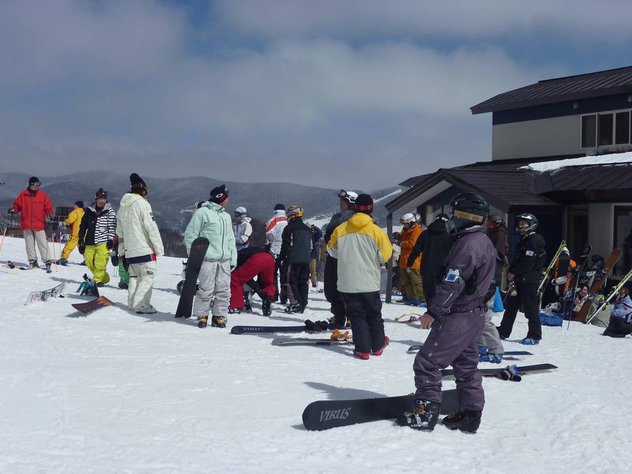 ドイツから遠征のフランク社長さんとオスカーさん、神谷社長さんノリダーさんおぎのさんテルさん、関西Vの皆さん、V東京のHasegawaさんをはじめお友達の皆さま、全国からお集まりのVライダーの皆さま・・・sの滑ってただけで何もしませんでしたが(汗)色々とありがとうございました!。昨年に引き続きフランク社長さんが来てくれて、同じゲレンデで皆さんが滑れるって事は普通では考えられない事ですし、こんな事が実現出来ちゃうスノーボードメーカーはVIRUSだけじゃないかと思います。