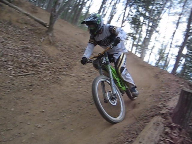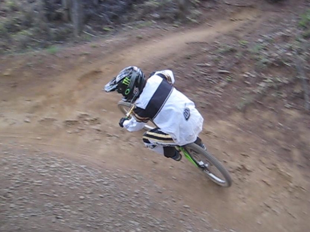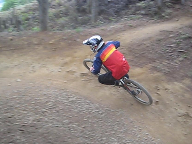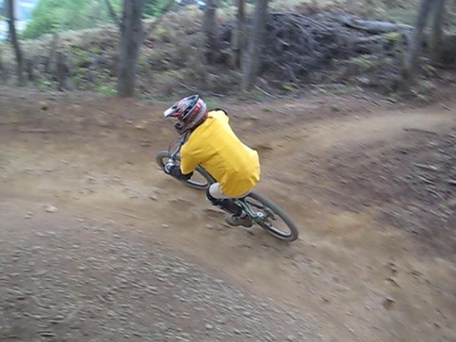 ・・・GWはここ数年ドライコンディション。今年も・・・ここ10日以上雨降っていないので、ドライ過ぎ^^;。砂埃でコースもちゃりんこも真っ白。浮石、小石、砂埃パフパフ・・・良いラインが見えないのと目がスピードに慣れていないので「あれ?あれ?あれ~~~?」って感じ^^;。冬も間も出来るだけ近所公園は走っていましたが、やっぱりパノラマは違う・・・体も神経も疲れまくりでした( ̄〇 ̄;)。