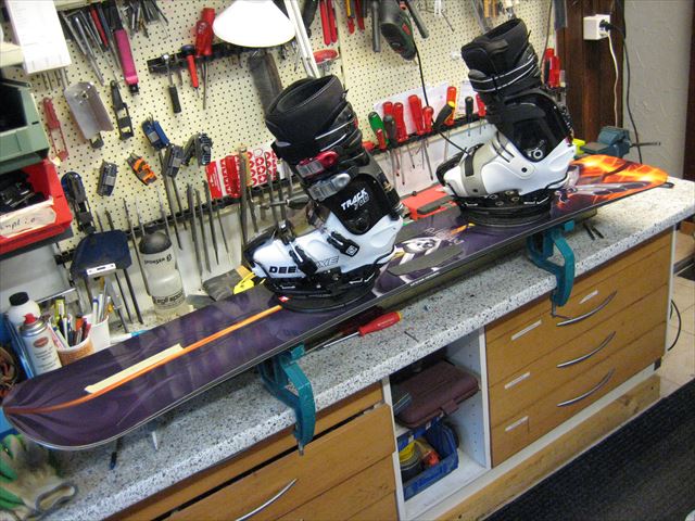 ・・・ビンディングですが、CARVE COMPANY、G-STYLEは付属のビスでOkです。F2のビンも専用ワッシャーとボルトで使用可能。他のメーカーのビンも、ボルトの長さを調整すれば何でも使えます。
