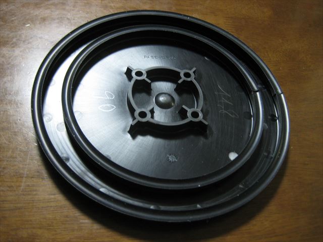・・・円の外周は約20㎝。ウエスト19,5㎝くらい以上のボードなら、どんなボードでも取り付け可能。厚さは約1㎝と2㎝のタイプがあり、フリースタイルにも使えます。pureboardingボードだと薄いタイプがいいと思います。