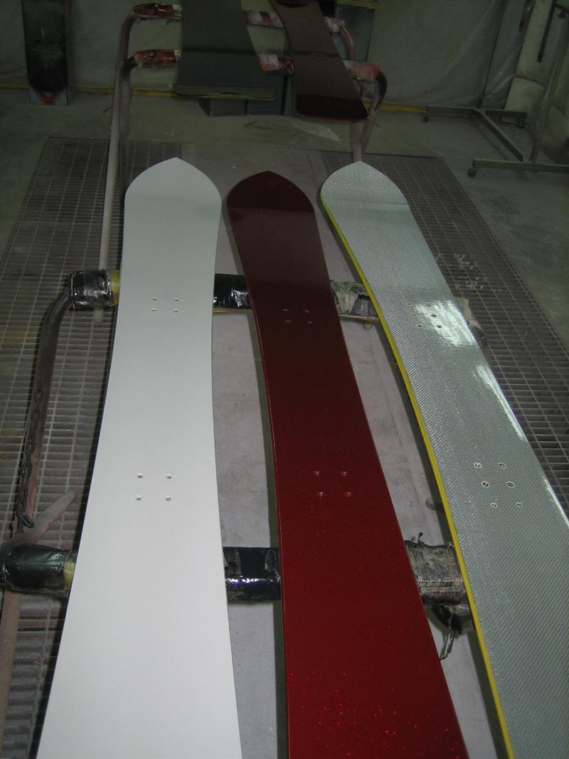 Nさんもサイケデリックが見たかったようなので、カーボンプレート貼ったままのを見てもらって触ってもらいました。思ってたよりフレックスは硬い!って感想です。Nさんの持って来た旧コアアウトロー、まだ滑走時間数時間・・・よりも、確実にサイケデリックのほうが硬いです。カーボンプレート無しでもサイケデリックのほうが硬いですね。キャンバーはアウトローのほうは3,2センチぐらいあります。