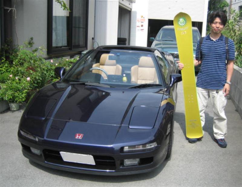 今日は沼津のNさんが愛車NSXで登場!。misakaに滑りに?NSXの修理に?じゃなくてアウトローのカーボン貼り&リペイントのために板を持ってきてくれました!。NSXカッコイイ!。板もNSXのようにカッコ良くなっちゃいます!。