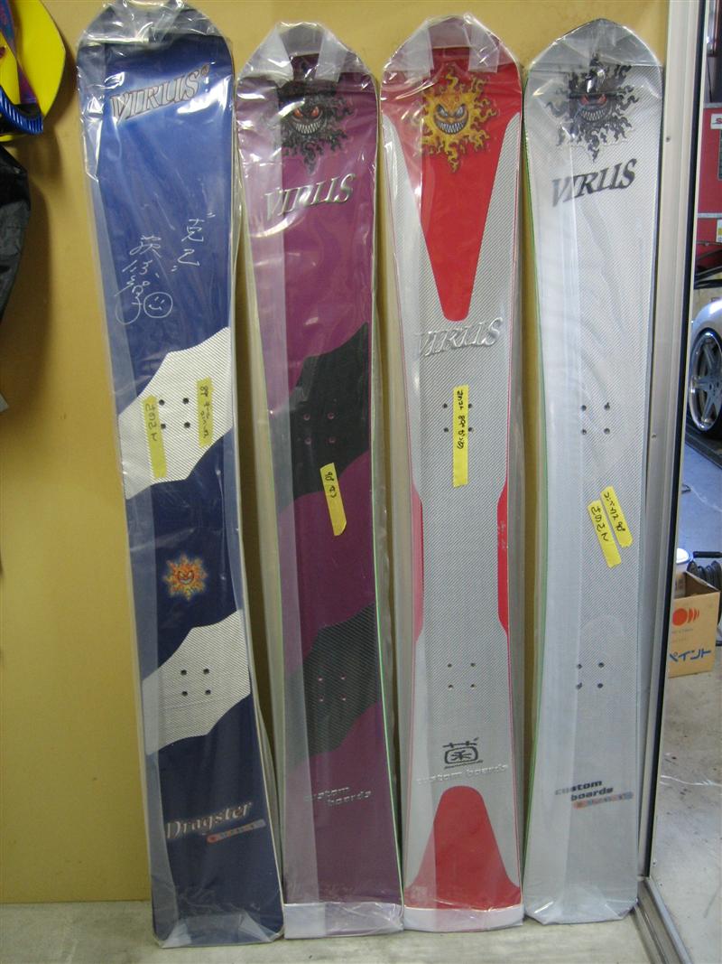 VIRUSの板のチューニングと言えば!のnakagawaさんにチューニングをお願いしていました!。そして綺麗に1本1本ラッピングされて帰ってきました!。袋から出すのもったいなくなっちゃう(笑)。