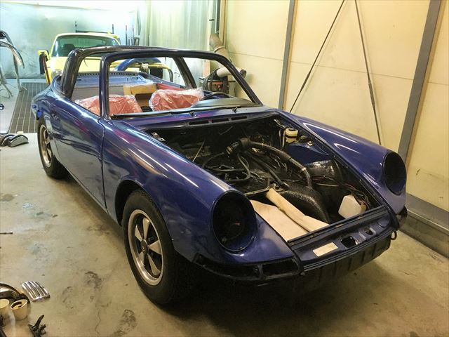 で、入替えで・・・本物ナロー!!しかも912のタルガなんて!超希少車らしいです!。このタルガはUSからの中古並行らしいですが、当時新車正規に日本に入った912のタルガはたったの1台らしいです。で、このタルガ何すんの???。このブルーから~の色替えです。超希少車。またまたやり甲斐ありすぎ^^;。他の仕事もやりなら~のでどんな風に段取りしようか・・・。黄色いのは・・・次の次の次の次に・・・来年確定^^;。そのまま自分の物になってそう^^;。