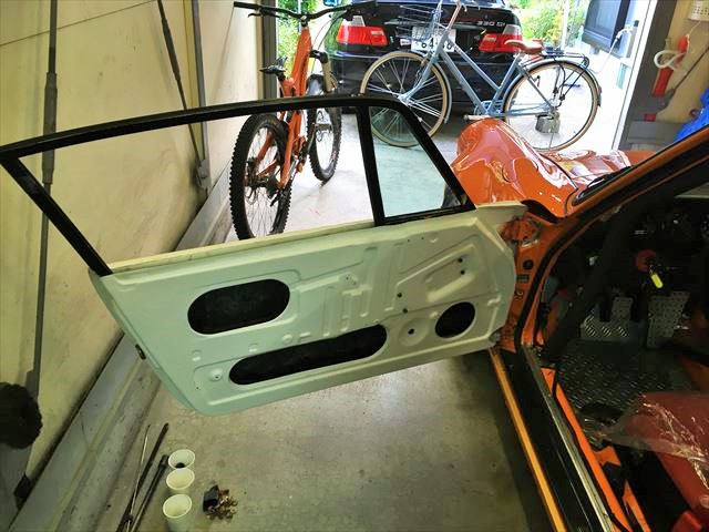 ・・・で、FRPドアの続き。も~ドアの表面でっこぼこ凸凹。まあ社外パーツなんてそんなもんですが、それにしてもこれはひどいほう。ほぼ全面パテ入れないと。社外パーツなんだからとそのまま凸凹のまま付ける人も居ますが、私は必ず修正入れます。