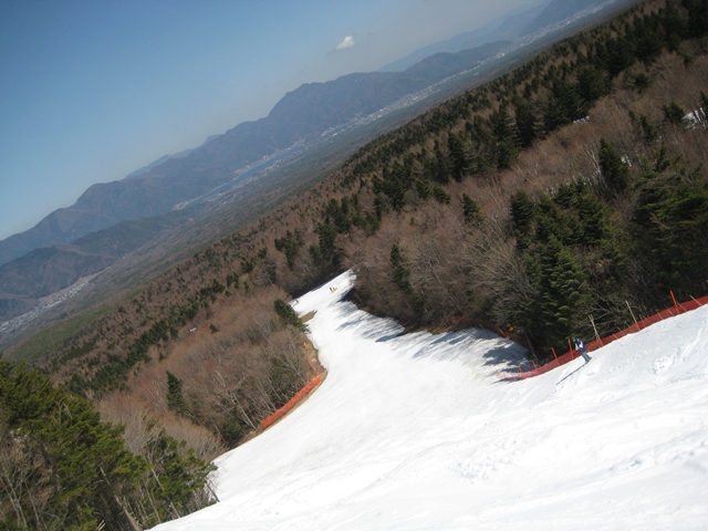 ・・・今日はちょっと冷え込んでたので、雪のほうは締まって硬めでGood!。斜度があまり無いふじてんだけど雪硬めで板走るし、アップダウンがあってなにげに楽しい!GWのヤケビみたい!。でもだんだんと緩んできちゃって昼前にはべちゃべちゃになっちゃいました( ̄〇 ̄;)。
