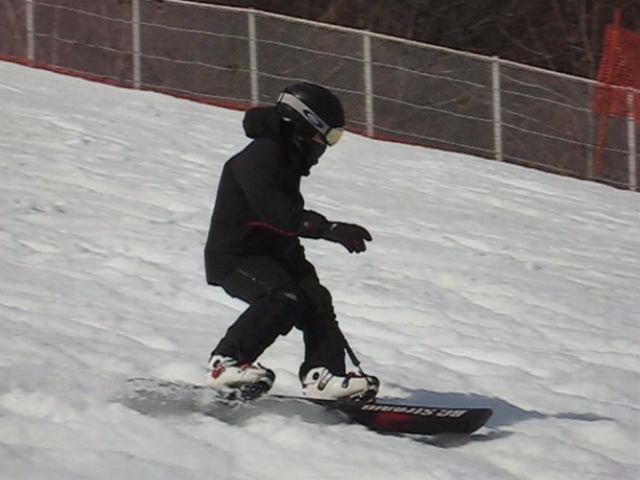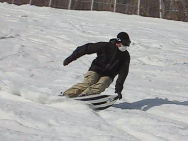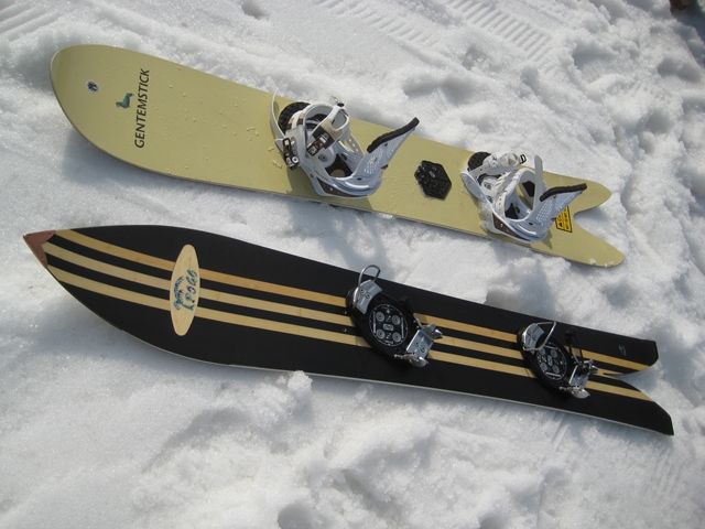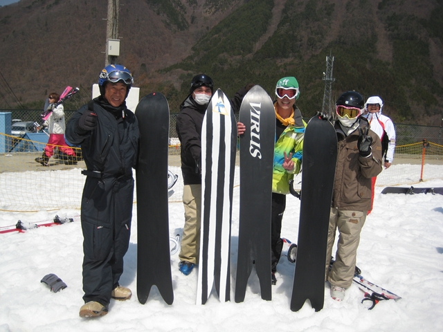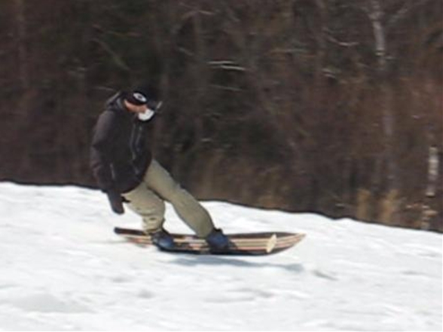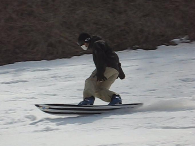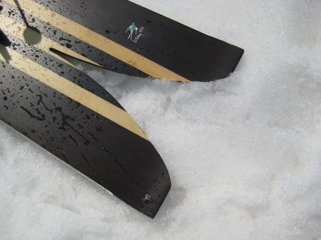 ・・・春雪のグサグサもさもさの深雪を物ともせず、このとんがりノーズは進んで行く!乗り方はいつもと同じなんだけど、オートマチックに後ろ荷重でノーズが浮き、スワローテールの柔らかさでそこがしなり、低速であってもグイグイとモーターボートのようにノーズを浮かしてテールカービングして行く!。