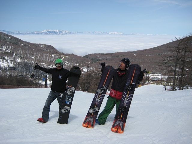・・・バーンがそんなんなので、ステージ2で滑っていたのはスキーの撮影の人達と、数人の普通のスキーのお客さん。・・・と、スノーボーダーは僕ら3人^^;。・・・普通じゃない撮影隊に気を使っていたのか?みなさん第3に行ってしまう・・・。
