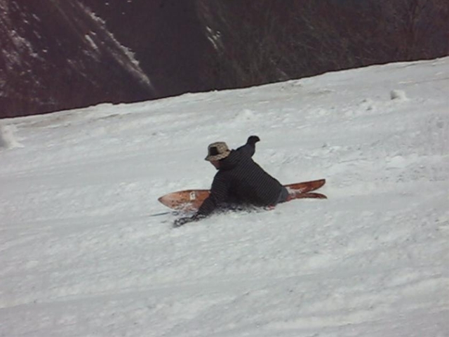 ・・・そして帰ってきて五竜のスノーナビ見たら・・・写真載せてくれていました!。以前八方のスノーナビでちっちゃく立っている姿は載った事がありましたけど、ライディング写真ははじめて!。カメラマンさんを完全にロックオン!して、カメラマンさんめがけてのLaydown!