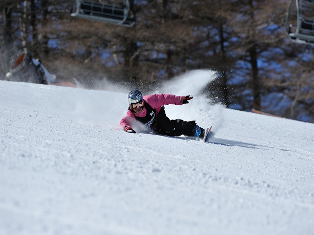 ・・・バックサイドは良い感触があったのですが、フロントサイドはィマイチ良いポジションが掴めず・・・良い感触の時は、s☆のはサーフィンやった事無いけどボディーボードは遊びで何回かあって、ボディーボードで波に乗った感じ?そんな風に感じる時があるのですよ。ビッテリー中に。この感覚はカービングロックオン中には無い感覚・・・。