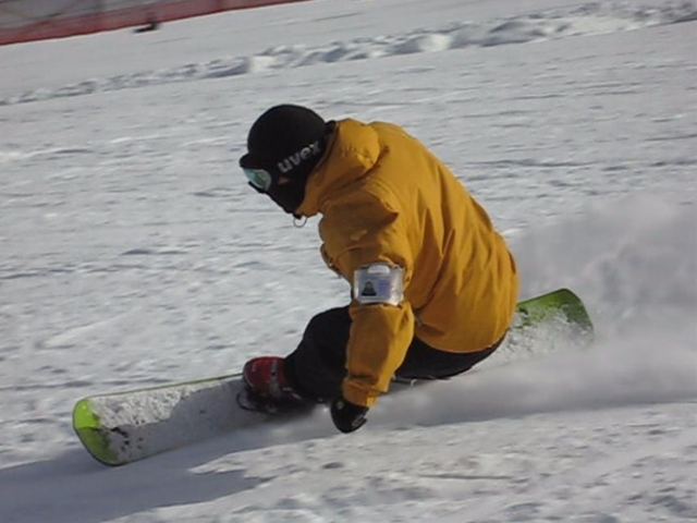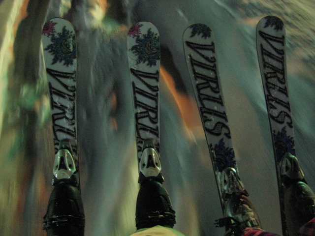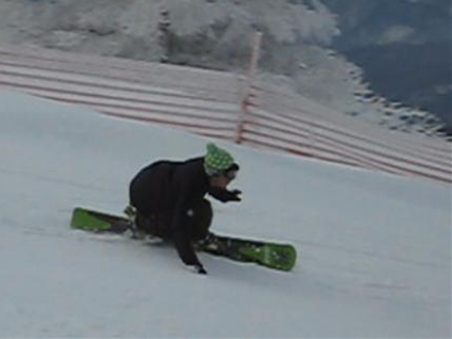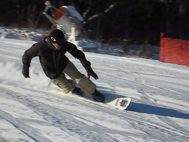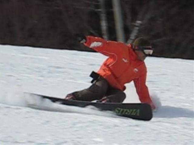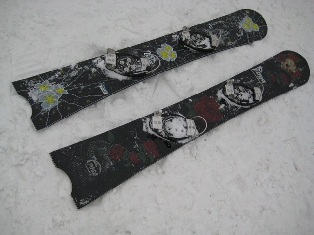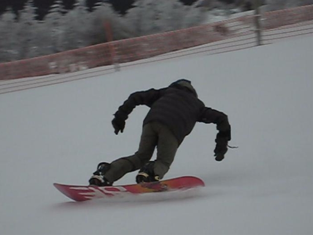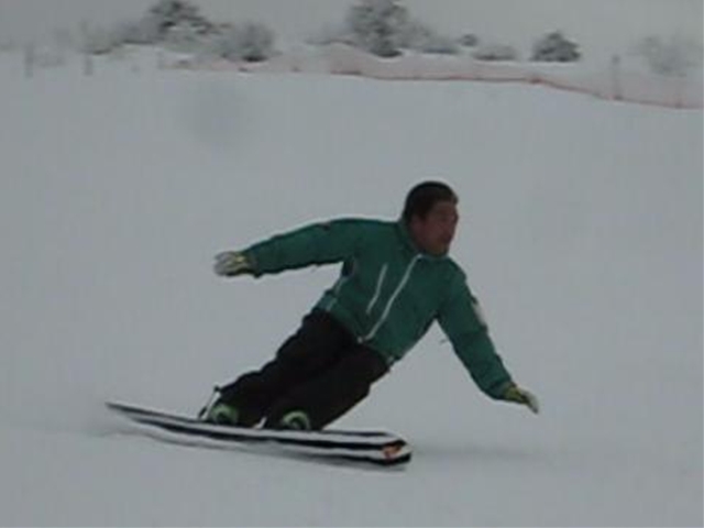 ・・・で、短ーいの持ってって遊んでみました^^y。・・・(実は昨夜のナイターでこっそり乗ってみたら、硬ーいバーンでの超高グリップと、ぴょんぴょん軽快な自由自在感にびっくりでした( ̄〇 ̄;)動画の板です。