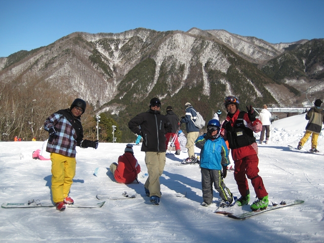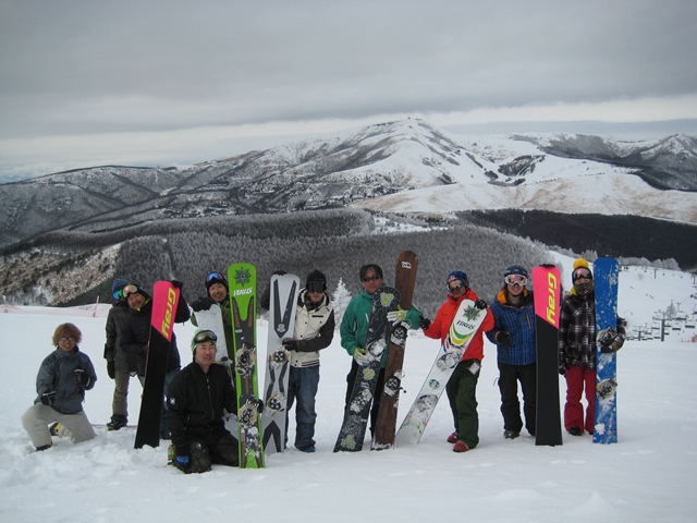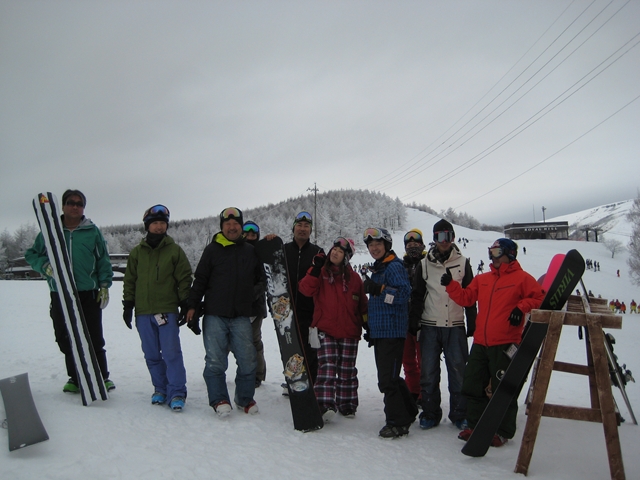 ・・・東京からひとしさんとお友達。愛知からビーパレ名古屋支部長tanakaさんご夫婦。山梨からm-hiroさん。嬬恋から湯の丸kuroiwaさん。福島からkomatsuくん。・・・まさに東西南北( ̄〇 ̄;)・・・で、真ん中ロイヒのまあじょさんは修学旅行の高校生相手にスノーボードの先生やってたから一緒に滑れなかったけど~( ̄〇 ̄;)。
