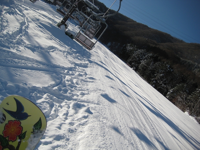 ・・・レインボー、センターはちょっと柔かい感じだったけど、日の当たるのを待って10時半過ぎに上がったナイアガラは・・・今季初のナイアガラヒット!。やばーいくらい気持ち良く滑れました!。