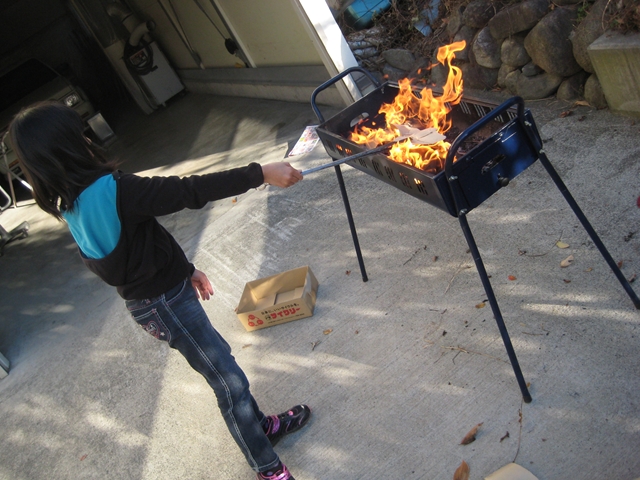 ・・・chizukaさんが高級芋を送ってくださったので焼き芋やってみました!。・・・焚火出来る所が無いのでBBQのコンロ台使用。ダンボールとか枯れ葉とかを燃やし・・・簡単に出来るもんだー!・・・お味は・・・甘くてうまーい!chizukaさんありがとうございまーすm(_ _)m・・・結局午後はさくらと焚火焼き芋ごっこして終わってしまいました( ̄〇 ̄;)。
