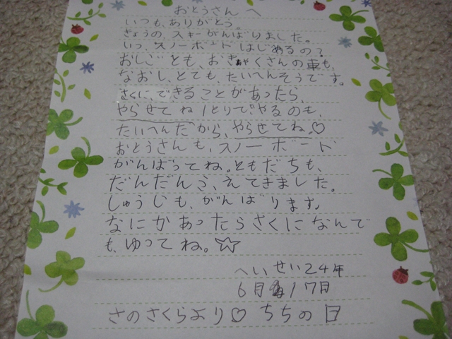 ・・・今日は久々にスキーの人達結構居て(10人くらいかな?)、小学高学年くらいの子なんかも居て、お~さくらのライバルじゃん(笑)・・・って感じでさくら頑張ってました!。・・・8歳だってそんな気持ちで食いついていかなきゃ!「数年後まってろ~ぜって~負けね~絶対見返してやる!」・・・この気持ちは口には出さないで心の中にいつも秘めていて欲しい事。何よりもこの気持ちが力になるんですよ!。