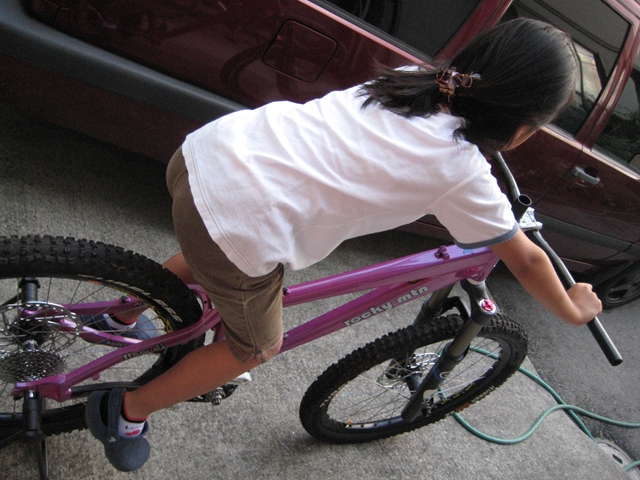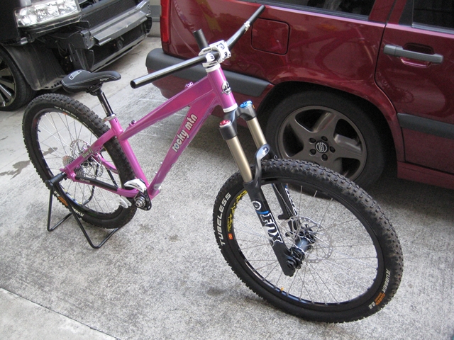 さくらのちゃり?・・・いやいやchizukaさんのHT作ってます!。ロッキーフローDJに36タラス180(汗)。しかもホイールはmavic823チューブレス(汗)。富士見いけちゃうHT!。