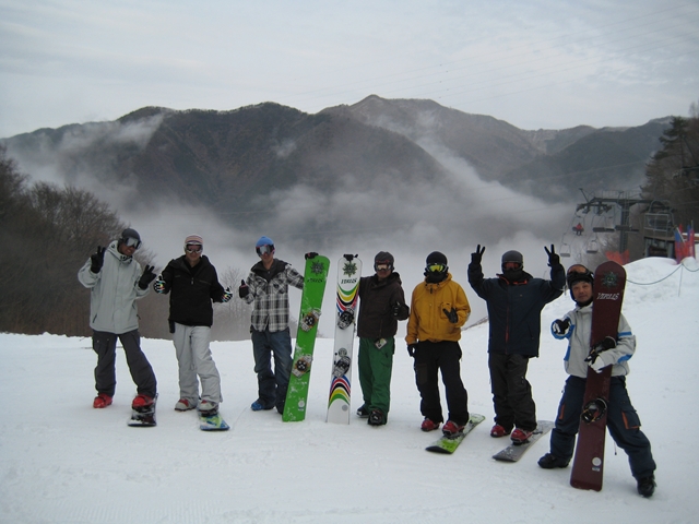 今日は天気が崩れて夜は雪か?・・・なんて週明け月曜日、みんな仕事してんの???的に思われちゃっても仕方が無いさの集まりっぷり(汗)。今日はbackspinさんozawaさんtamoさんokamuraさんnakamuraさん、スパルタン友の会m-hiroさん、shimaさん、UFC友の会mutouさん、富士山のあっち側のスキ―場のローカルらしい富士市から来たみたいなので富士さん。・・・そうだHasegawaくんが寂しそうに「アシム愛の会を・・・」なんてメール来てたの忘れてた(汗)。ohnoさん、非対称を対象に?「バックサイドで止まれないぢゃん汗の会」・・・でも作っておいて下さい。(Asymは3D構造で板がねじれているので、バックサイド側のテールがいつも上がってます。なのでテールスライドすると気持ち良くテールが流れ、普通に止まるのが難しいと言う普通じゃない失敗作品のような板です(汗)。・・・でも本気モードで滑っている時は、そのねじれと非対称が切り返しの軽さと早さを生んでいるマジカルボードなんですよ!)。