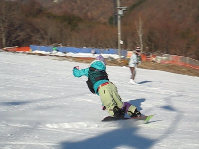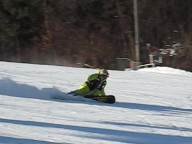 ・・・朝一なんてほとんどお客さん居なくて貸切状態!。ちひろにレクチャーしながらあっちこっちで撮りながらアタック。spit53効果が効いたのか、無敵のバックサイドとフロントサイドを手に入れつつあります!。誰の真似でもないちひろの滑りが出来てきて、今日の滑りを覚えるとHH系の板もOk!。あとは経験あるのみ!。今日は言う事無し!。・・・ひとこと言う事があるとすれば、雪と仲良く!雪と喧嘩しないエッジングを心がけるといいと思います。sのはガツン!って踏んでいる印象があると思いますが、踏む分だけ緩めています。いや、踏んでいないで体重乗せているだけです。あとはいかに抜重するかです。荷重より抜重のほうが難しくて大事かもしれないです。