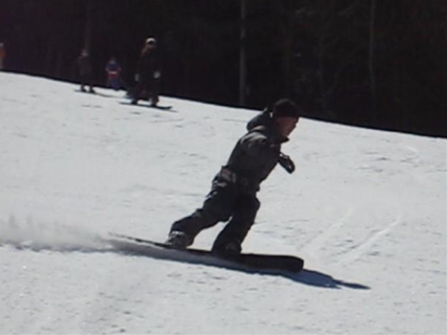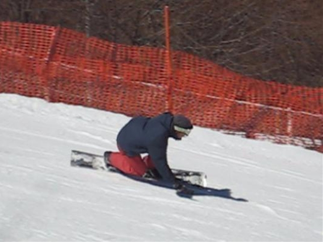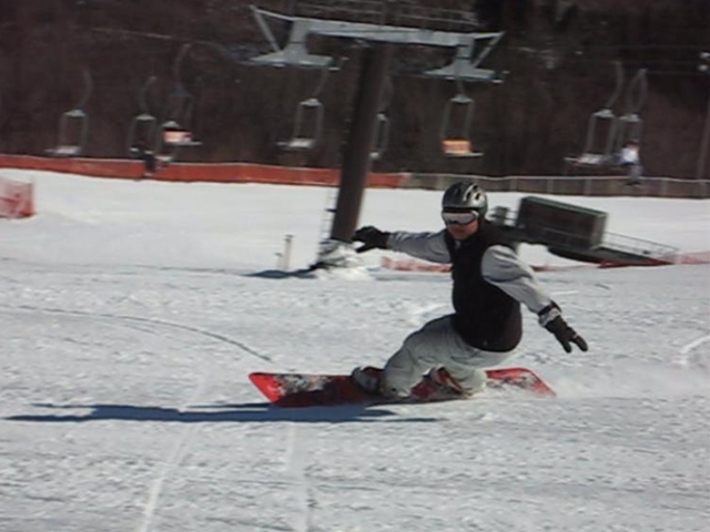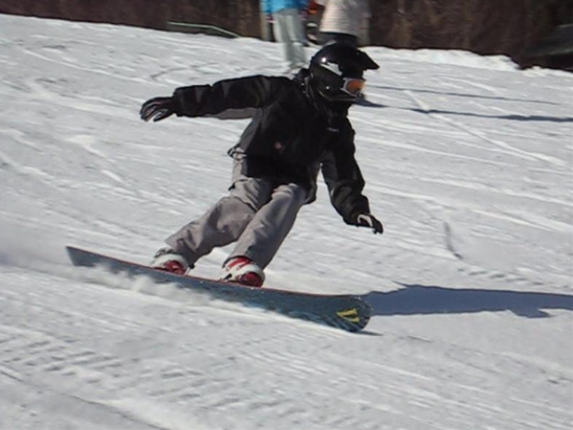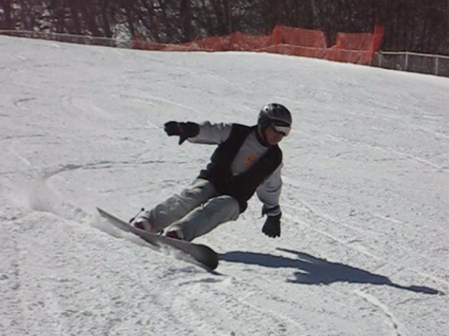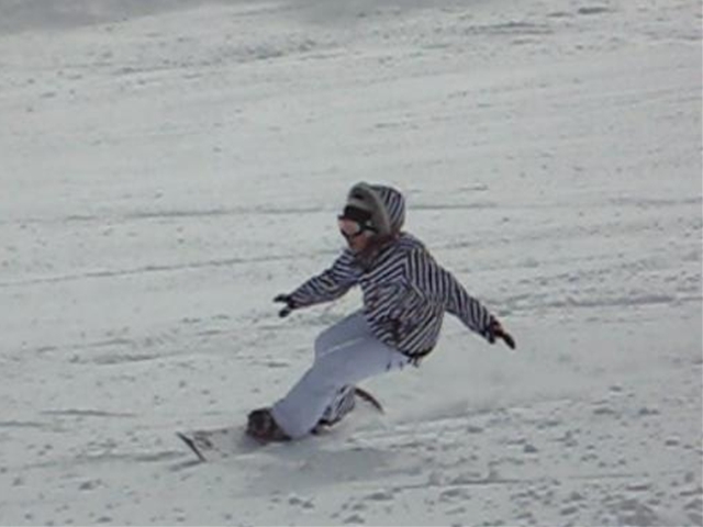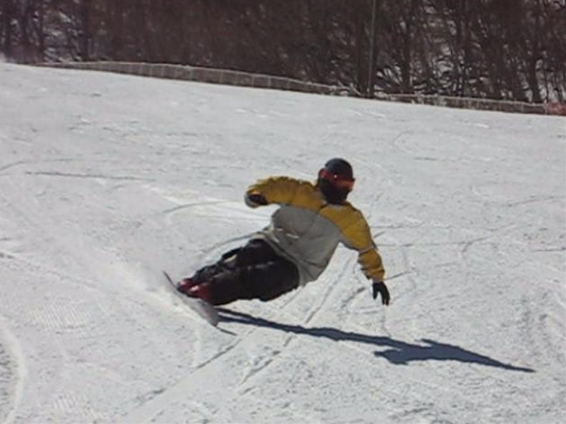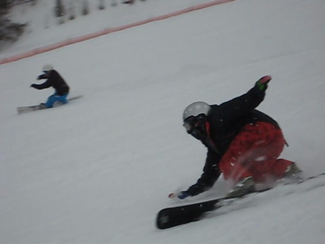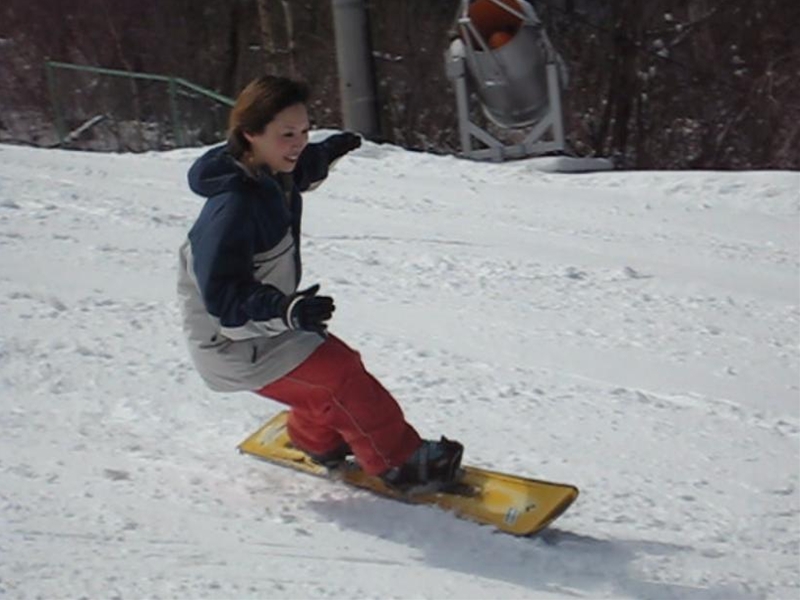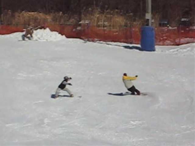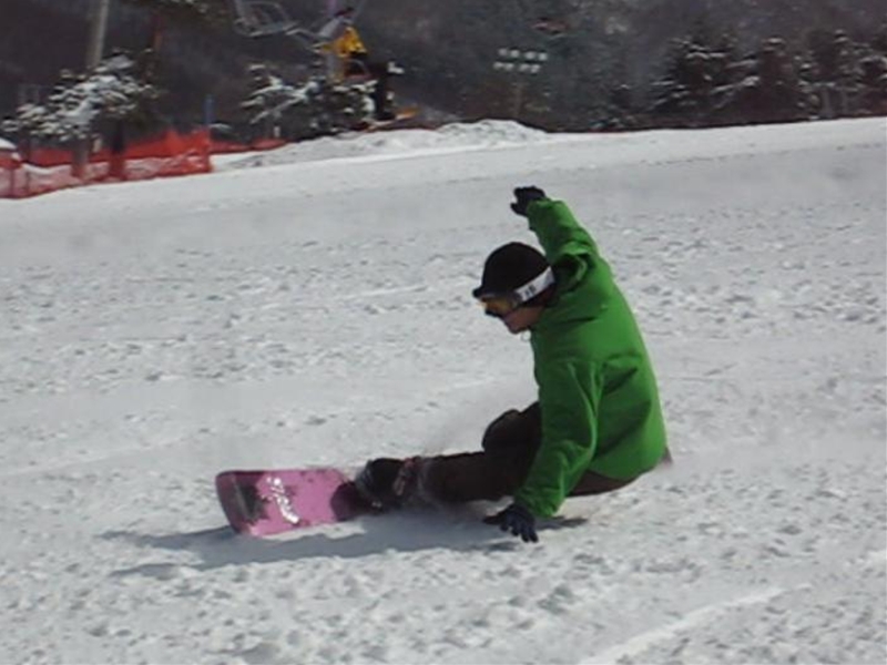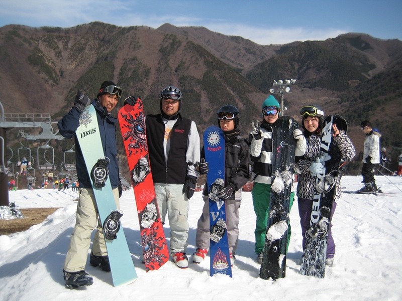高校生?大学生?・・・なんせちひろよりもぜーんぜん背がちっちゃいし、ニコニコしててカワイイから・・・(汗)。でもホントは小学生のお子さんが二人居るお母さんなんだそうです!。スノーボード歴は長いそうですが子育てで滑れなかった時があり、でも今はお子さんも小学生になったのでご主人にお子さんを見てもらってちょこちょこ滑りに行っているそうです。男の鏡!みたいな素晴らしいご主人さんですね!。ちなみにご主人はフリースタイル、奥様はアルペンなんだそうです。・・・ですが、滑りに行くのはほとんどが平日でお一人でバスツアーなんだそうで、一人でも滑りに行っちゃうって事はそれだけでもスノーボードが好き!って言う思いが伝わってきます!。