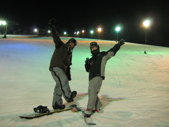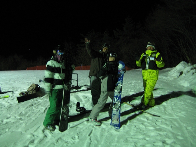 ファミリーコースでは、misakaレーサーズの皆さんがやはり今期最後のナイターレースをやっていました!。スキーも有り!フリスタも有り!初心者も有りの異種格闘技戦!。・・・そこには・・・karasawaおじちゃん、bobさん、きょうこちゃんの姿が!なんてレア映像なんだー!。そのファミリーコースはもっとカリカリ(汗)でしたが皆さん果敢に攻めていました!。