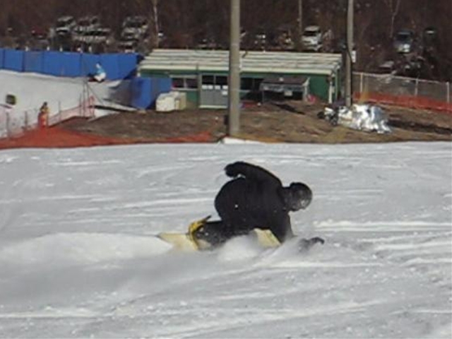 雨の音で目ざめ、起きたら雪・・・かなり降っていたので・・・とりあえず仕事してから11時頃に行ってみると・・・湿雪モサモサ・・・すでに荒れ荒れ(汗)ボコボコ(汗)。結構積ってましたよ!。