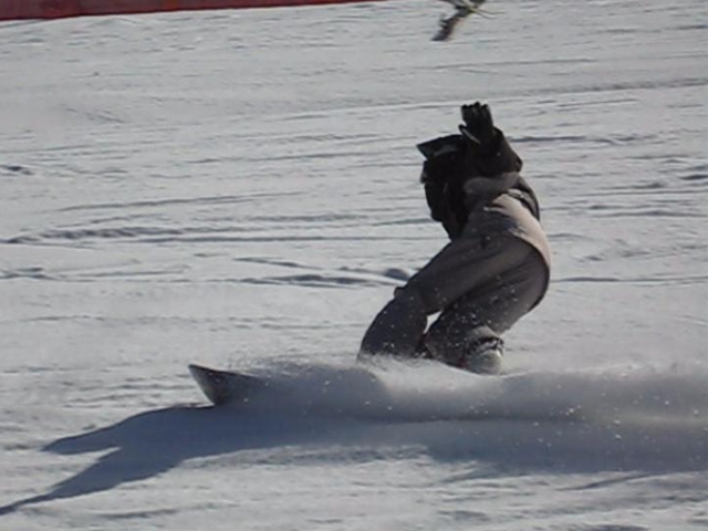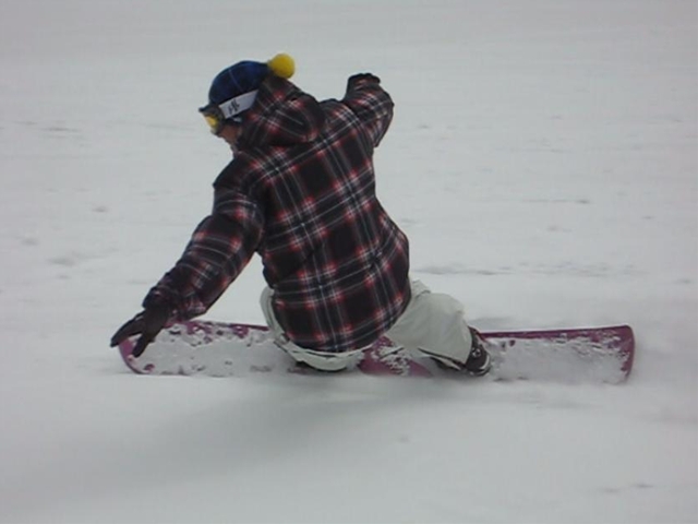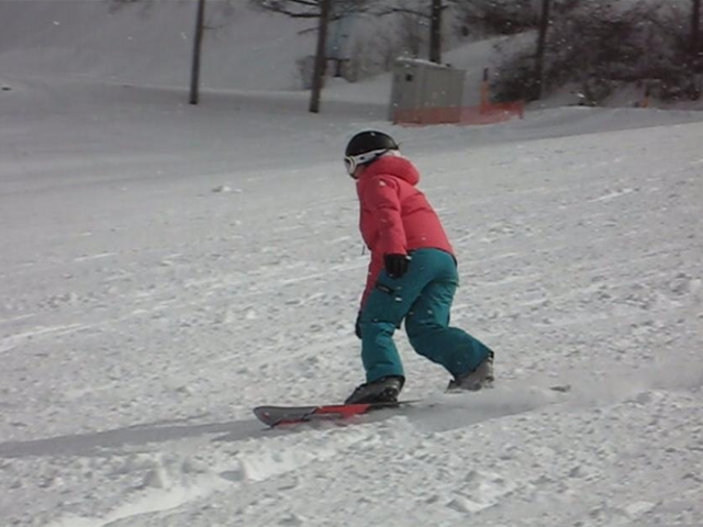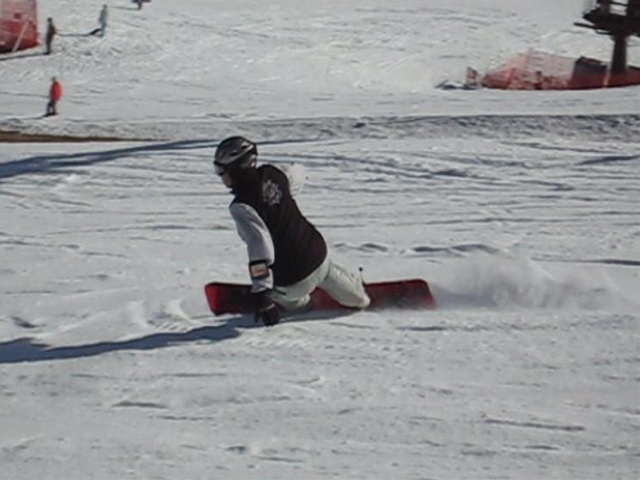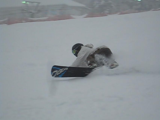 ・・・僕がぴょんぴょんエアターンしてたら、やってみたいから教えて!・・・と!。まあ、いつもの通りなんちゃってなアドバイスだけで、SGのメタルハンマーヘッドの175のGS板でぴょんぴょんやってるしー(汗)。硬くて重いからやりにくい・・・と言う事で、sののOutlawに乗ってみてもらい・・・何本かでテールアップまでしているしー(汗)。