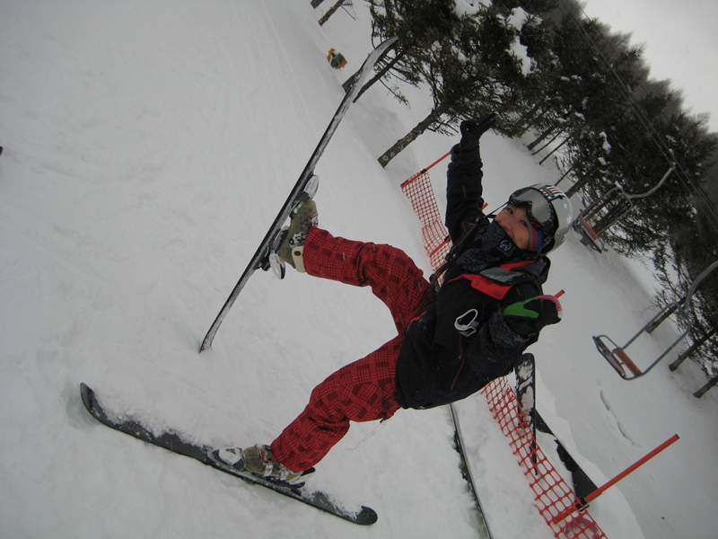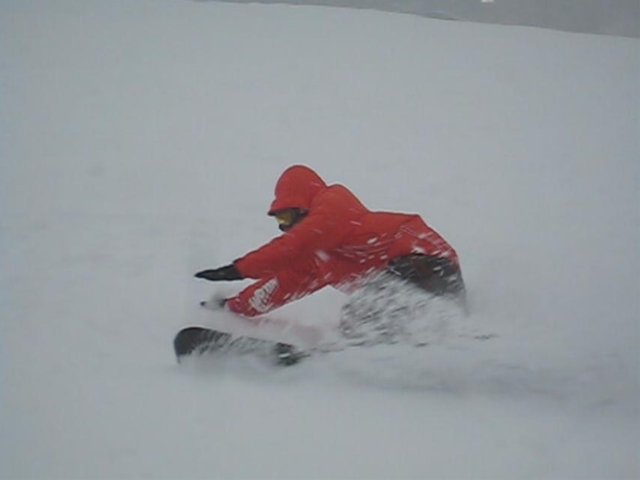 月曜日は雪・・・昨日もちょっと雪・・・今日は朝一は晴れて青空が見えていましたが、序所に曇って雪・・・降ったり止んだり・・・と言う事で、エコーは70センチくらい積った(汗)とかで、圧雪してあっても柔かく掘れ掘れになっちゃう天然雪バーン!。ちょっと柔か過ぎだったけど、ソフトタッチでコース脇はパフパフで、癒されスノーライディングでした!。
