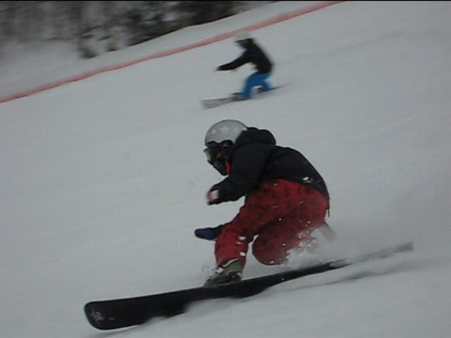 今日はお若い3人に純粋な気持ちとすげーパワーをもらいました!。動画の午後の部の最初の、あいちゃんと秋山さんがデュアルスラロームっぽく滑ってくる所・・・秋山さんにタイマン張ってるあいちゃんって(汗)。