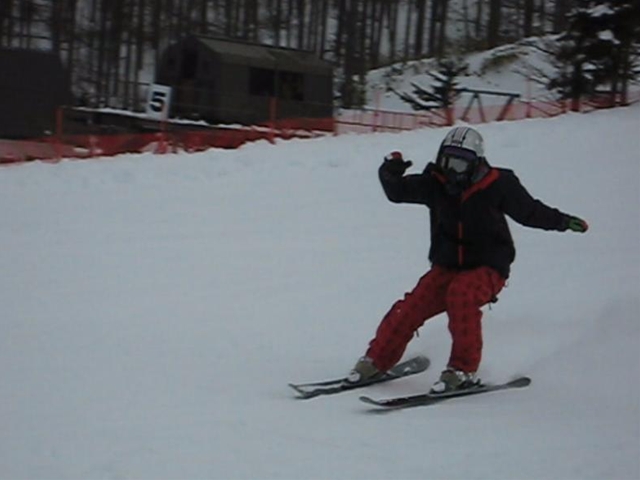 ・・・sのちょっとスキーするね!って事で、下で見ていたあいちゃん!。sののあまりにも変なスキー姿に・・・「へたくそー!」って大笑い(汗)。・・・ここであいちゃんの好奇心に火がついて・・・。子供の頃にやった事があったみたいですが、ほぼ初めて・・・。っていっても、一本目から直下り(汗)怖くないの・・・(汗)。・・・秋山さんからアドバイスをもらい(秋山さんはスノーボードをはじめる前はスキーでレースをやってたそうです)、その後の2本で上手に滑ってるしー(汗)。sの完敗(汗)。