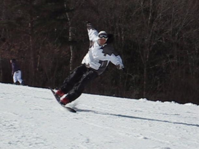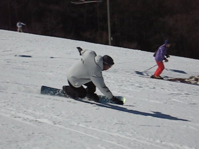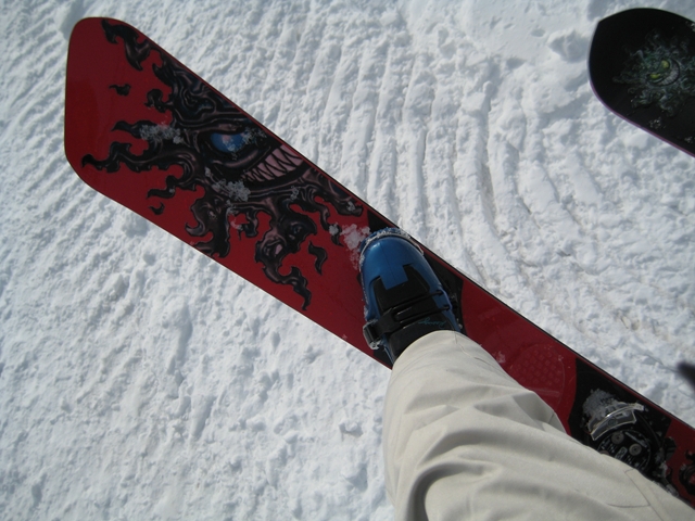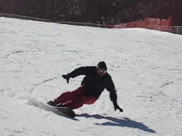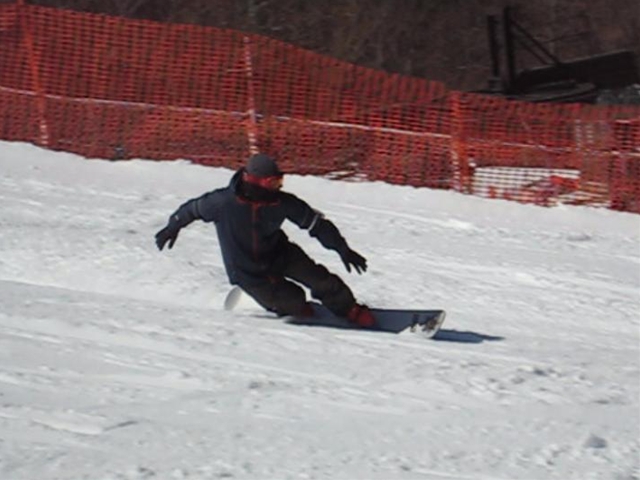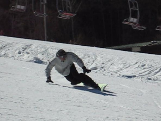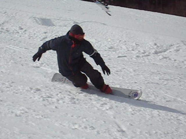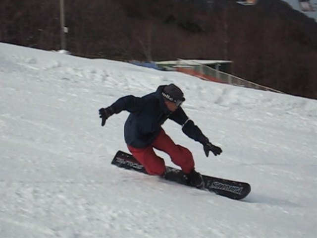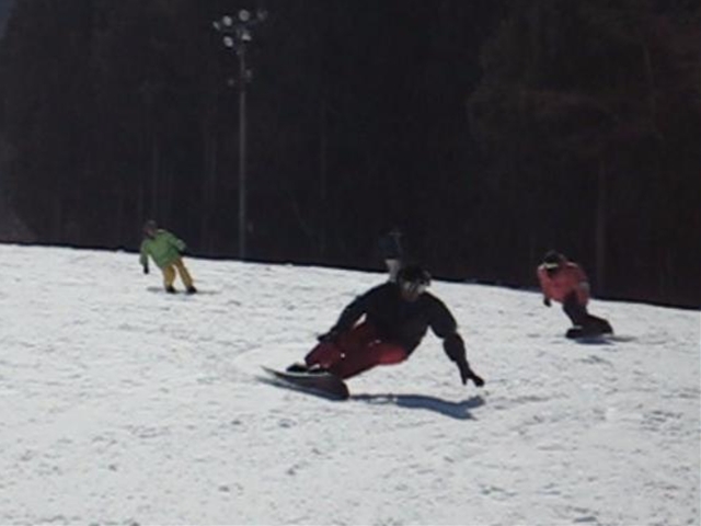 朝一のバーンは程良く硬く締まったGB!板が良く走り気持ちよかったです!。・・・段々と雲も取れてきて太陽が顔を出すと雪は緩んできて・・・こんだけのカービングライダーが・・・あっと言う間にボコボコでした(汗)。それでも皆さんガン斬りです(汗)。