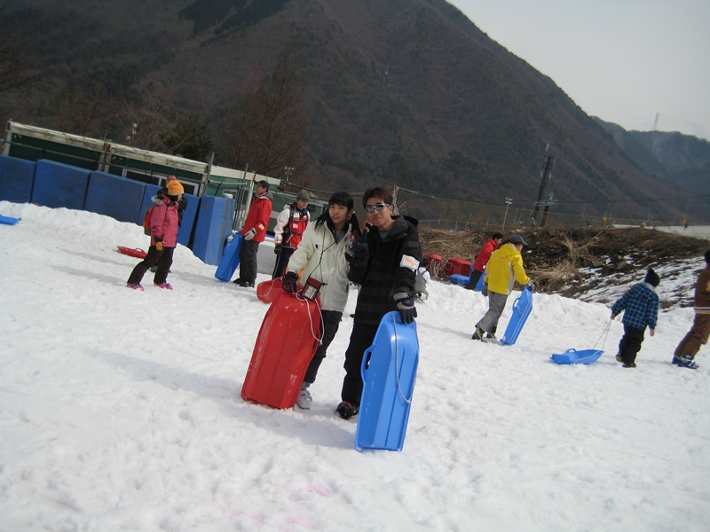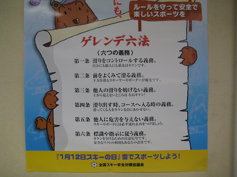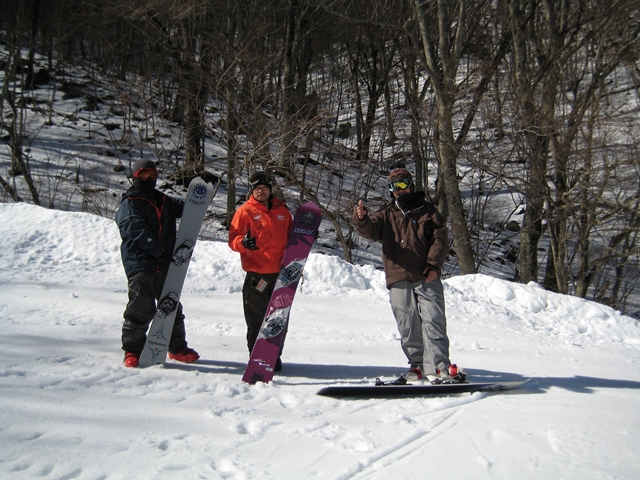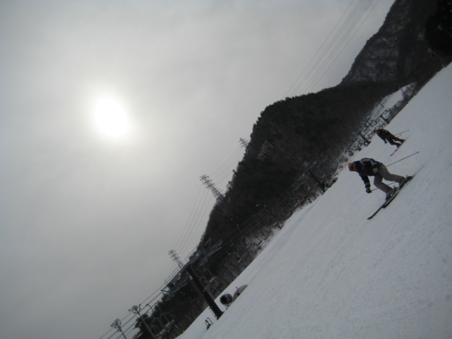 お客さんは少なくほぼ貸切状態でしたが、スキー教室の高校生が500人?が準備していたので、空いてて荒れていない(荒していない)バーンを早々4人でやっつけちゃいました!・・・その後は500人1000本のスキーがデラがけしてくれた事でしょう!。これぞギブ&テイク?(汗)。