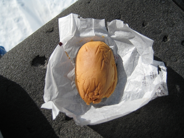 ・・・今日は新たな試みとして、リフトの上でひよ子・・・をやってみました。・・・コケても無いのにひよ子が・・・つちの子になっていました(汗)。お味のほうは・・・飲み物が無かったのでのどに詰りそうでした(汗)。