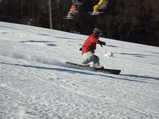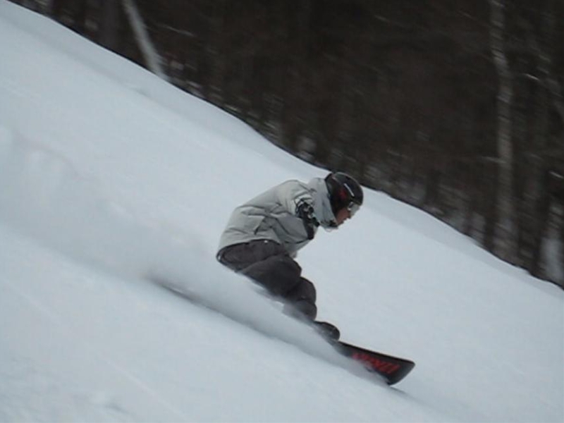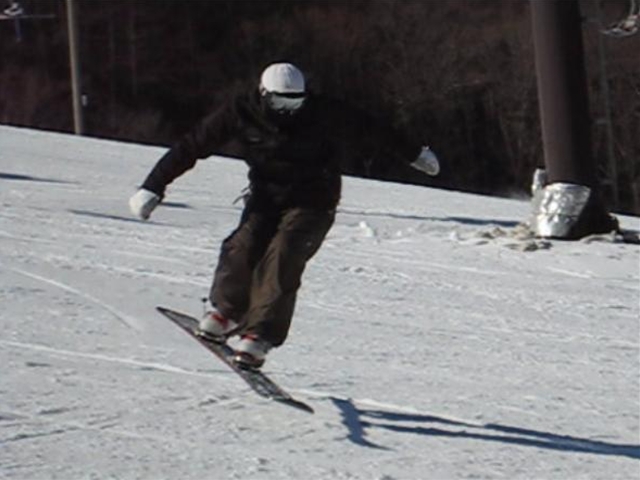 ラッツは1/3しか整備していなくて(汗)狭く、まだまだうねりが凸凹ある状態。でも雪質は良かったのでアタックしましたが、バックサイドで引っぱると目の前には林・・・(汗)ちょうどフロントサイドターンあたりが凸凹、真ん中あたりにもうねりの凸凹があったので結構難しいラッツでした。で・・・天気も晴れから曇ってきて小雪なんかも舞ってきたけどそんなに気にならないくらいで、午前券でしたがパッション、ラッツ、ポール・・・バラエティに富んだ内容で皆さんも楽しかった?と思います。・・・ラッツはsのに付き合わされたって感もありますが・・・(汗)。
