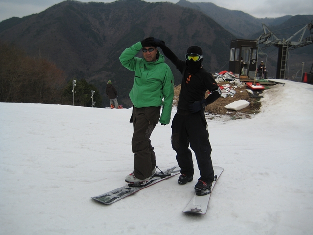 茶色のウエアーの方は、遥々福島県から来てくださったkomatuさん。先日、板のリペイントのご依頼を受けまして、それが縁で来て下さいました!。さすがに遠かったみたいですが(汗)・・・でもいいお土産が出来て良かったです!。