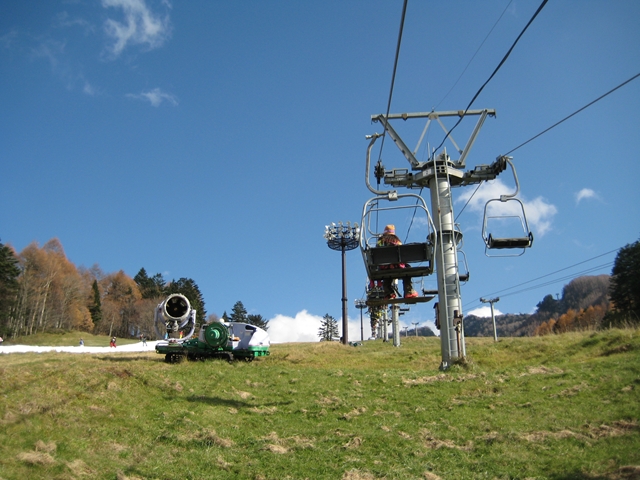 リフト開始前にバーンを見上げると、そこには最高そうに見えるステージ2!。天気もいいし期待大!・・・と普通はなるのですが、ここはasama2000なんです。そんな簡単にいきません(汗)。一本目からよーく締まったハイスピードバーン。いつものごとく、ちょっぱやスキーヤーのオンパレード(汗)。降雪してあった表面の雪は、序所に削られて硬めのバーンが現れてきましたよー!(汗)。これぞasamaの真骨頂?。空いていたらまだしも、ちょっぱやスキーヤーを気にしながら滑るので結構なハードランでした(汗)。