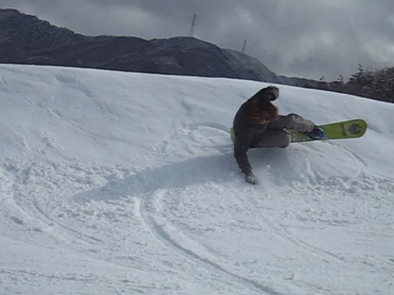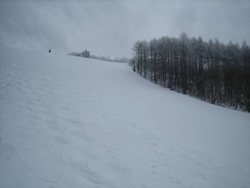 先週は見るからに雨降りそうな雰囲気でしたが、今日は晴れそうな曇りそうな・・・。なんとも微妙な天候で、しまいにゃー小雪も降ってきちゃったり(汗)でしたが、バーンは今期行った3回の中で一番良い雪質です!。パッションは比較的フラットですが、ラッツはどうもうねりが取れていません。最高にいいバーンはやはり3月待ちですね・・・(汗)。